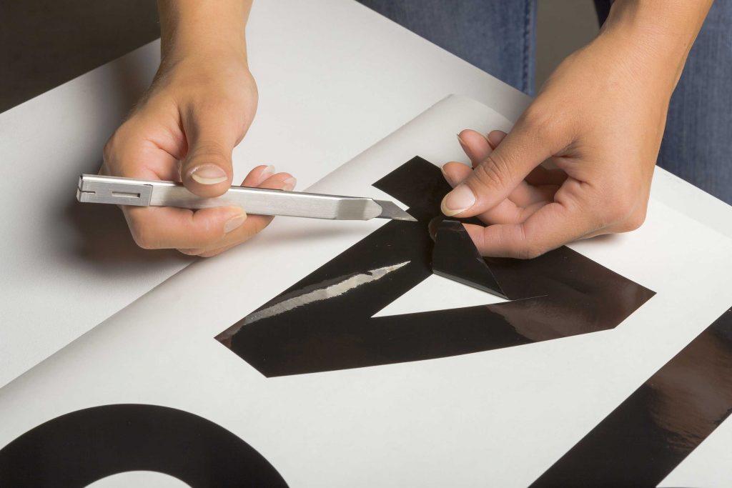 • konturgeschnittene Schriftzüge und Logos